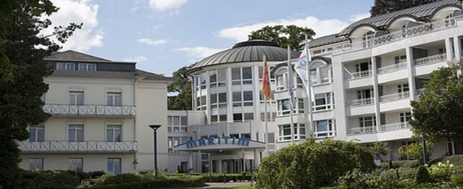 Das 4**** Hotel Maritim in Bad Wildungen ist ein erstklassiges Hotel, welches durch seine mondäne Bäderarchitektur und die ideale Umgebung besticht: ruhig gelegen, an Europasgrößtem Kurpark, und nur einen kurzen Spaziergang von der malerischen Altstadt entfernt.Das Hotel verfügt über ein Restaurant, Café mit Sommerterrasse und eine Cocktailbar mit Terrasse. Im Beauty- und Wellnessbereich des Hotels, mit großzügigem Schwimmbad, erwartet Sie eine Wohlfühloase der Extraklasse, die keine Wünsche offenlässt! Die Classic Doppel- und Einzelzimmer sind ausgestattet mit Boxspringbett mit Komfort-Kopfkissen und Federkernmatratze, voll ausgestattetes Badezimmer mit Badewanne, TV, Telefon, WLAN, Mini-Kühlschrank, Safe, Kapselmaschine für Kaffee und Tee.